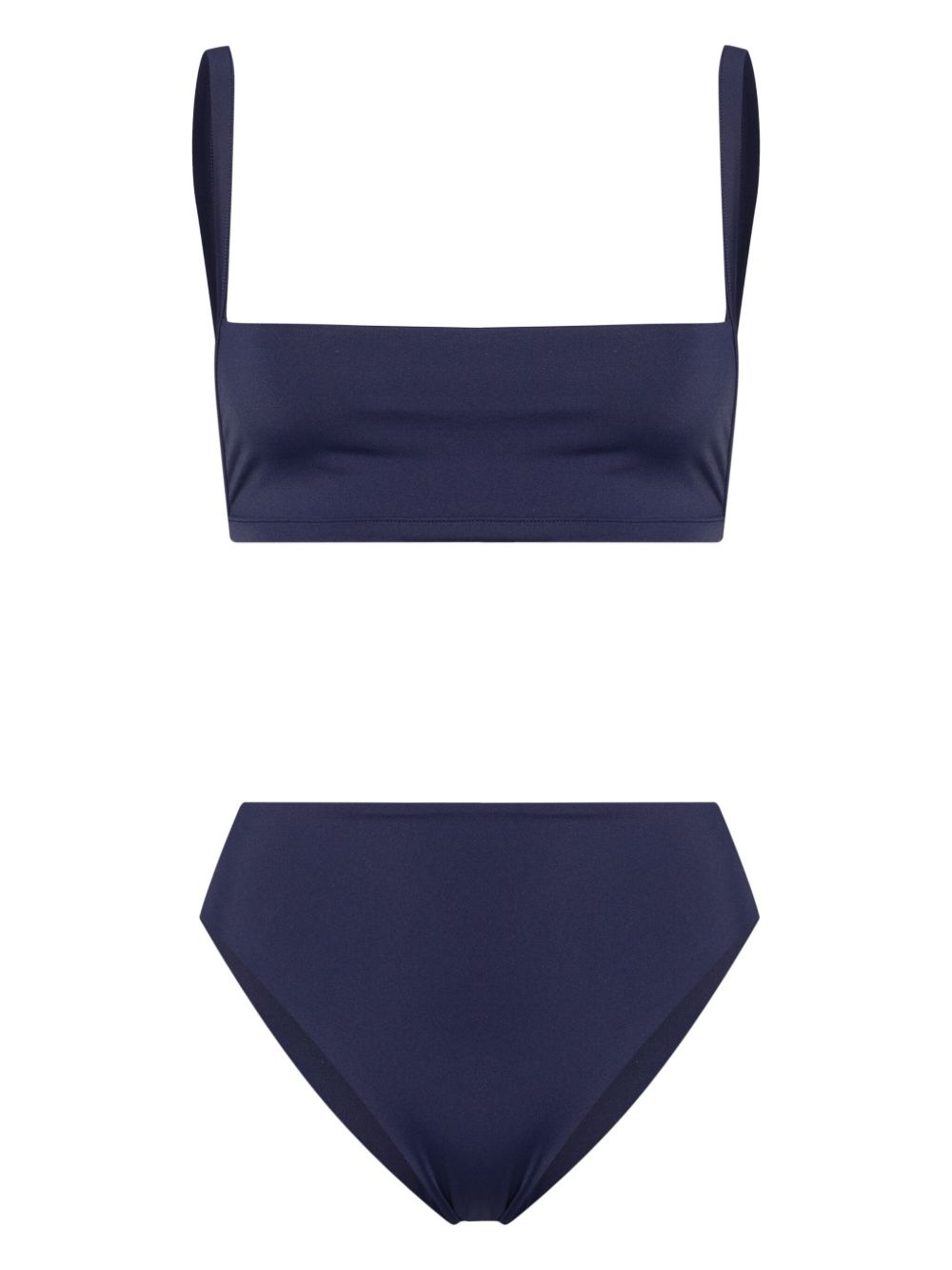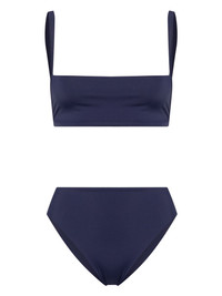 Aretha bandeau bikini Highlights - Navy blue - Stretch-design - Bandeau style - Spaghetti straps - Rear clasp fastening - Mid-rise - Full lining - Two separate pieces - Be mindful to try on swimwear over your own garments. Made in Italy Composition Polyamide 82%, Elastane 18%