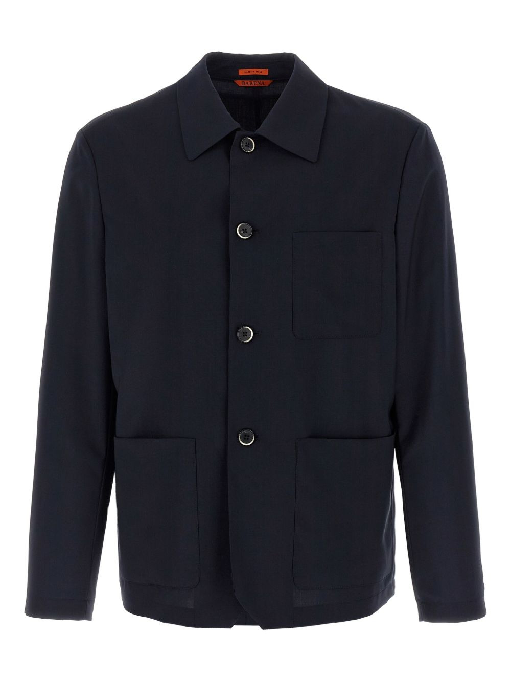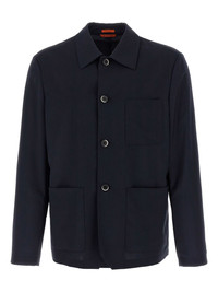 button-cuffed wool overshirt Highlights - Navy blue - Virgin wool - Front button closure - Long cuffed sleeves - Patch pockets - Buttoned cuffs Made in Italy Composition Virgin Wool 100% Washing instructions Read Manufacturer Guidelines