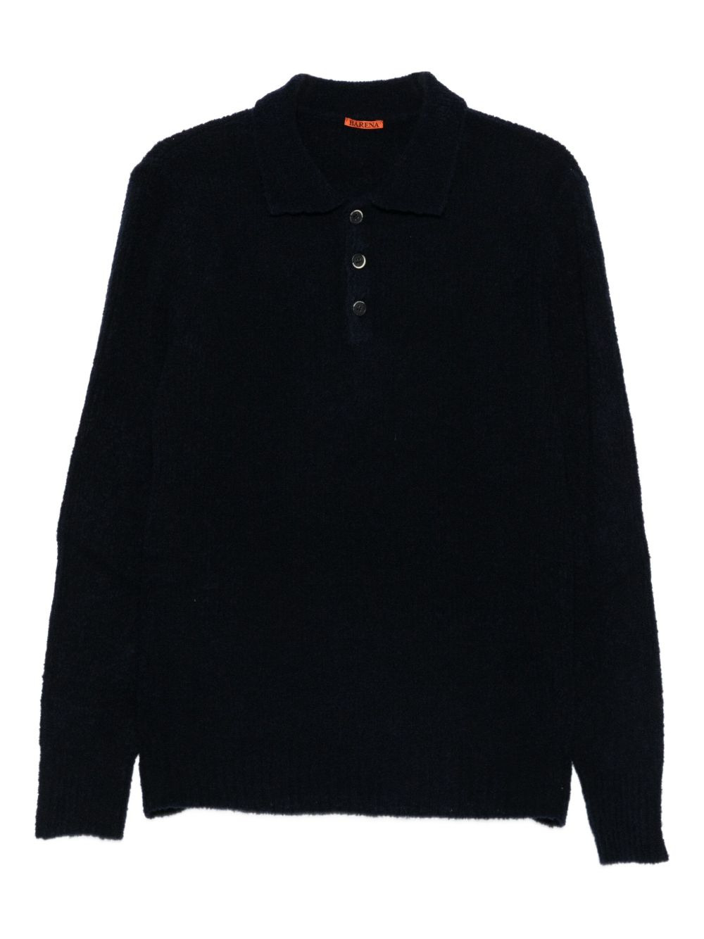 long-sleeved wool polo shirt Highlights - Navy blue - Front button placket - Long sleeves - Polo collar - Straight hem Made in Italy Composition Wool 100% Washing instructions Read Manufacturer Guidelines