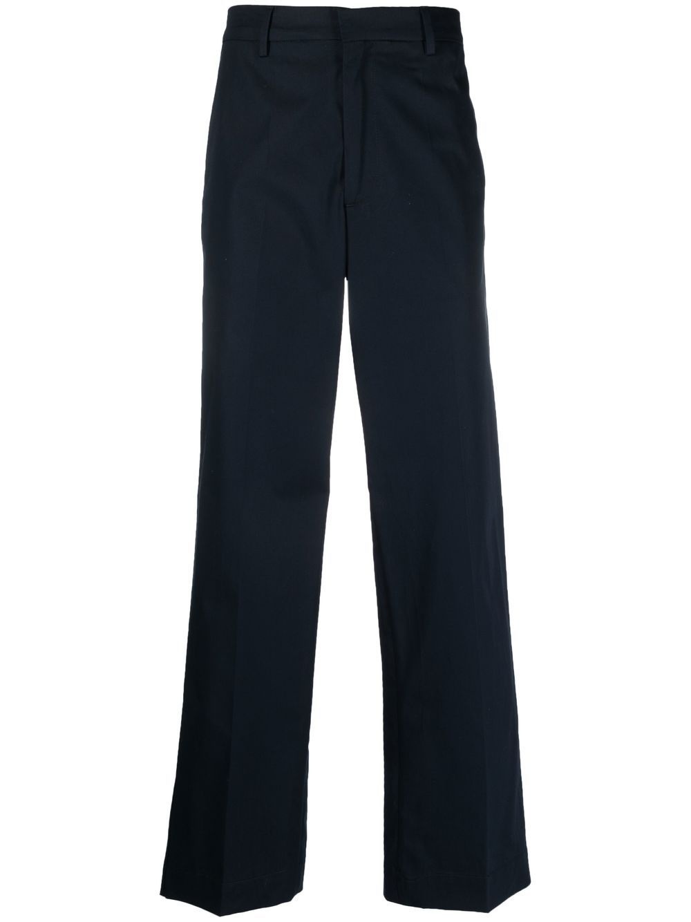 mid-rise straight-leg trousers navy blue cotton belt loops concealed front zip fastening two side slit pockets two rear welt pockets straight leg Made in Italy Composition Outer: Cotton 100% Lining: Cotton 100% SIZE & FIT Model measurements Height 6 ft 1 in(1.85 m) Bust/Chest 38.58 in(98 cm) Hips 37 in(94 cm) Waist 30.31 in(77 cm) FittingInformation This piece fits true to size. We recommend you get your regular size Regular fit Made with a mid-weight non-stretch fabric