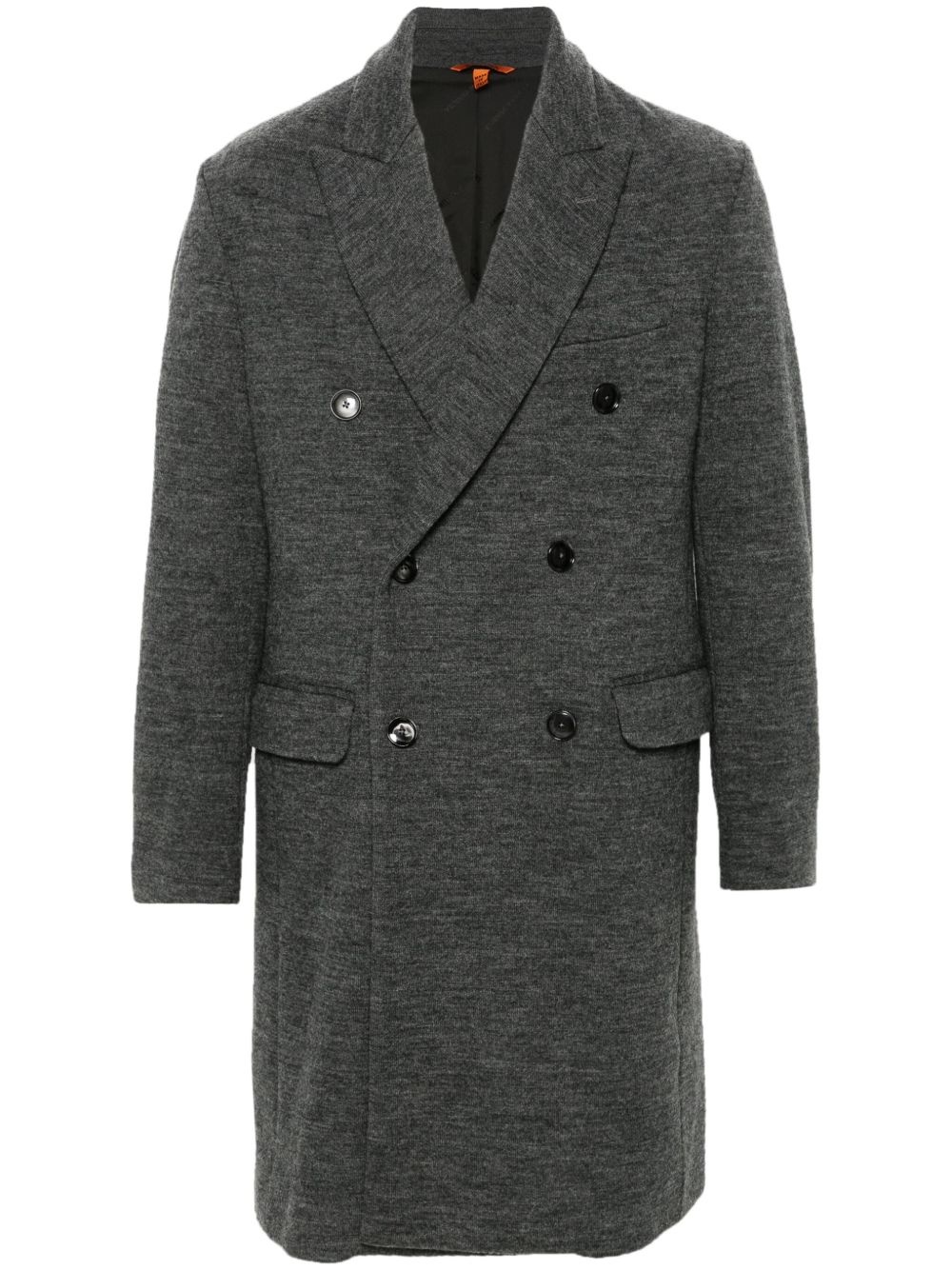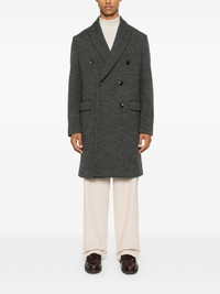 ribbed coat Highlights - Anthracite grey - Virgin wool blend - Ribbed knit - Melange effect - Double-breasted button fastening - Peak lapels - Chest welt pocket - Two front flap pockets - Long sleeves with buttoned cuffs - Central rear vent - Internal pocket - Full lining - Straight hem - Mid-length Made in Italy Composition Outer: Virgin Wool 98%, Polyamide 2% Lining: Cotton 100%, Viscose 52%, Acetate 48% SIZE & FIT Model measurements Height 6 ft 2 in(1.87 m) Bust/Chest 38.18 in(97 cm) Hips 36.61 in(93 cm) Waist 29.13 in(74 cm) FittingInformation Designed to be unstructured, offering a loose fit throughout The vented hem offers movement at the rear Made from a midweight fabric