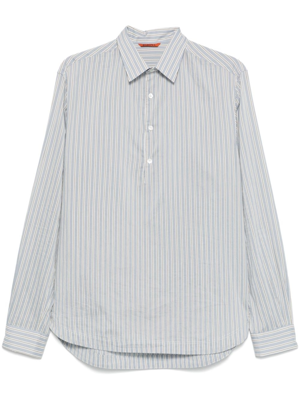 striped shirt Highlights - Sky blue - Short front button fastening - Buttoned cuffs - Box-pleat detail - Curved hem Made in Italy Composition Cotton 80%, Silk 20% SIZE & FIT Model measurements Height 6 ft 2 in(1.87 m) Bust/Chest 36.41 in(92.5 cm) Hips 37 in(94 cm) Waist 29.52 in(75 cm) FittingInformation Designed for a relaxed fit, this piece allows for comfort and movement when worn Made from a lightweight non-stretch fabric