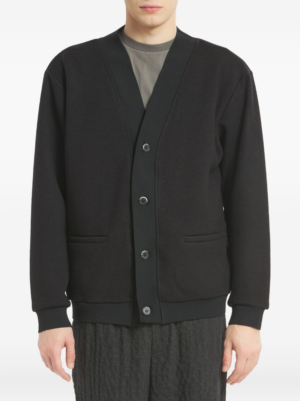 V-neck buttoned cardigan Highlights - Black - V-neck - Front button closure - Two front welt pockets - Wool blend - Ribbed cuffs Made in Italy Composition Virgin Wool 98%, Polyamide 2% Washing instructions Read Manufacturer Guidelines
