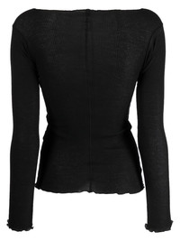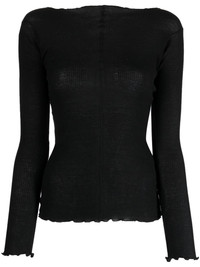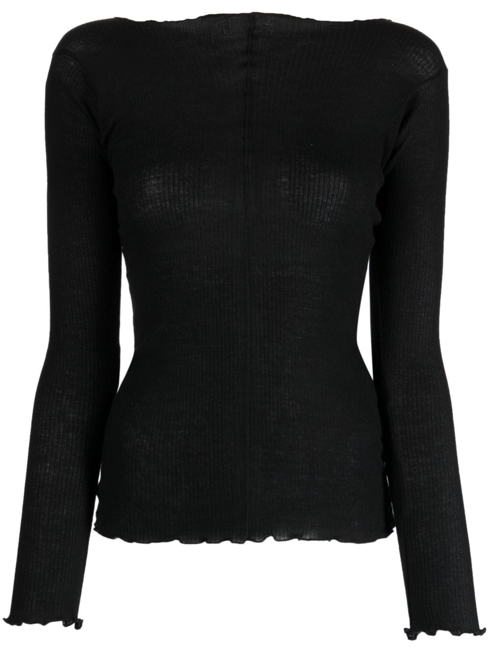 vertical-seamed ribbed-knit jumper Highlights - Black - Organic cotton - Ribbed knit - Pullover design - Vertical seamed - Slash neck - Long sleeves - Lettuce cuffs and hem Imported Composition Body: Organic Cotton 100% Washing instructions Machine Wash