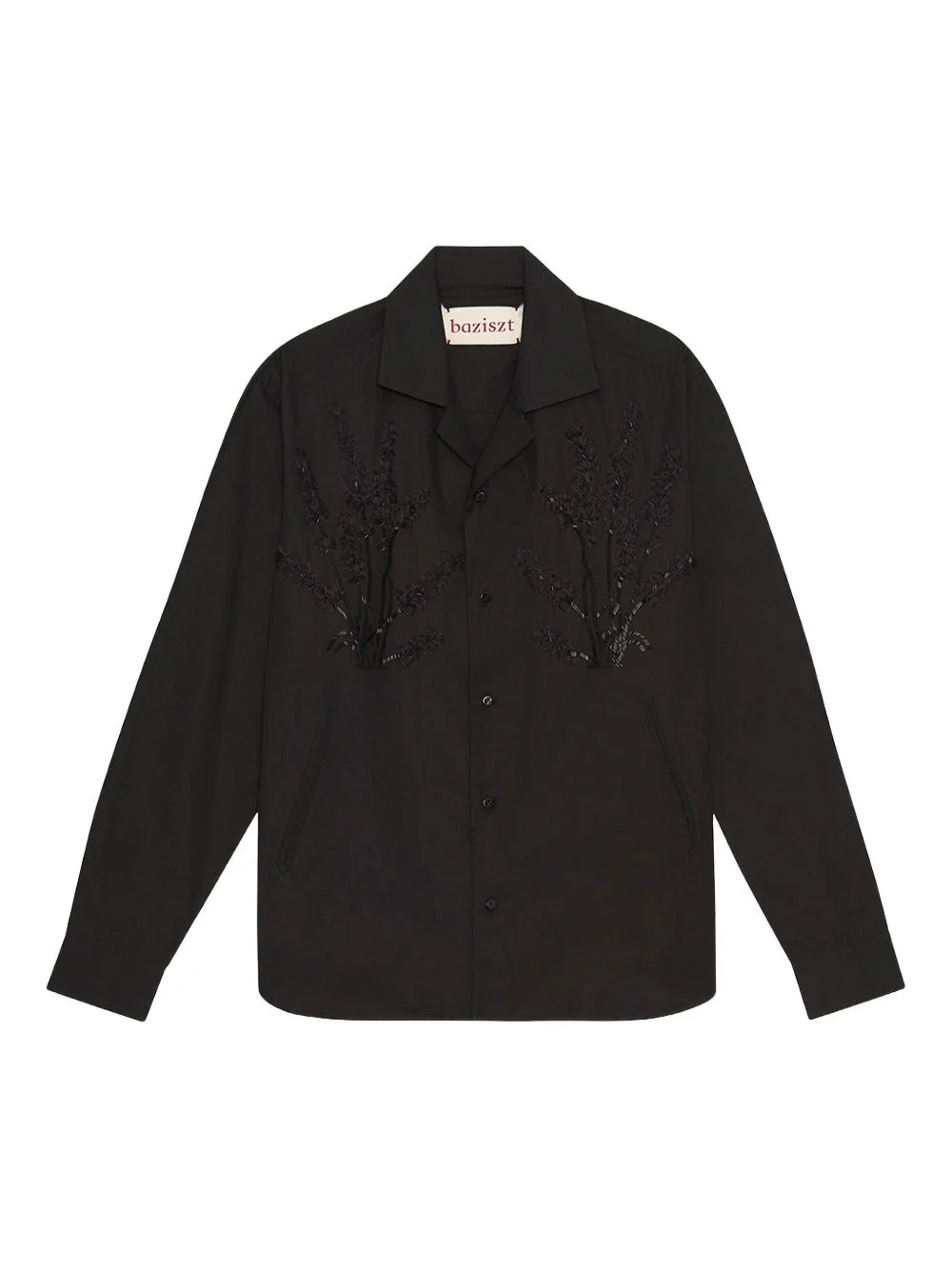 embellished long-sleeved shirt Highlights - Black - Long sleeves - Revere collar - Button fastening - Floral embellishments Imported Composition Cotton 100% Washing instructions Read Manufacturer Guidelines