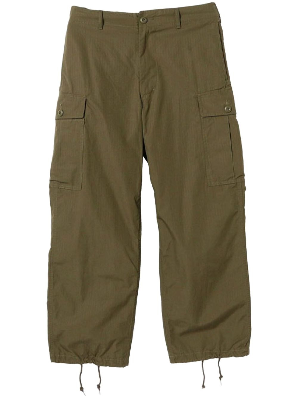 cargo trousers Highlights - Olive green - Front button fastening - Two side slit pockets - Two side cargo pockets - Wide leg Imported Composition Cotton 100% Washing instructions Read Manufacturer Guidelines