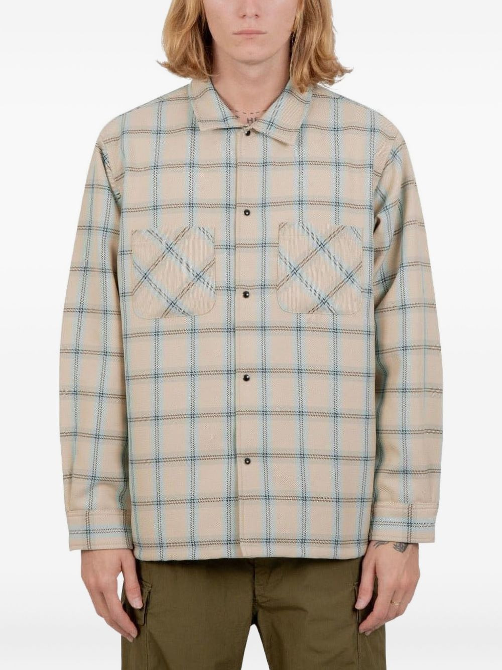 checked shirt Highlights - Beige - Checked pattern - Press-stud fastening - Chest pockets - Long sleeves Imported Composition Polyester 100% Washing instructions Read Manufacturer Guidelines