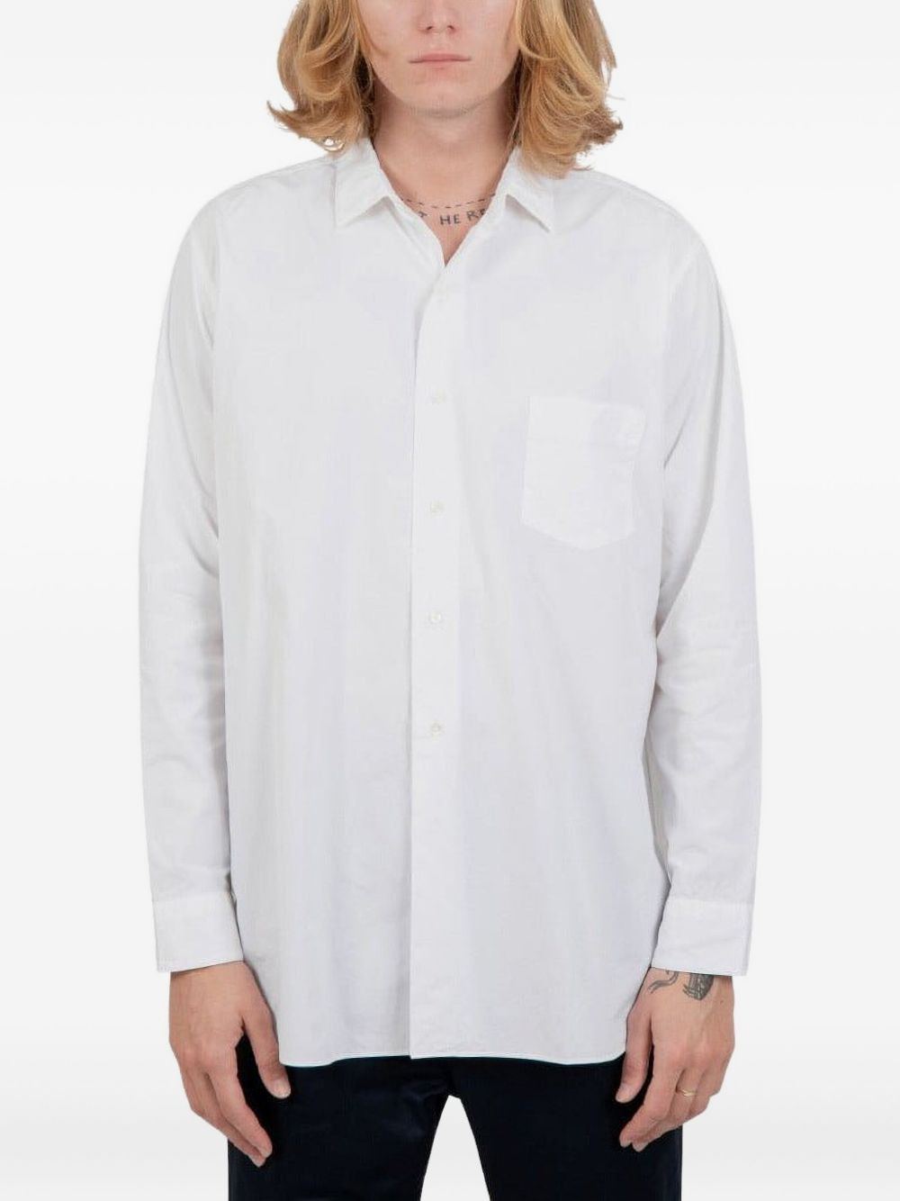classic-collar cotton shirt Highlights - White - Classic collar - Long sleeves - Button fastening - Chest pocket - Curved hemline Imported Composition Cotton 100% Washing instructions Read Manufacturer Guidelines
