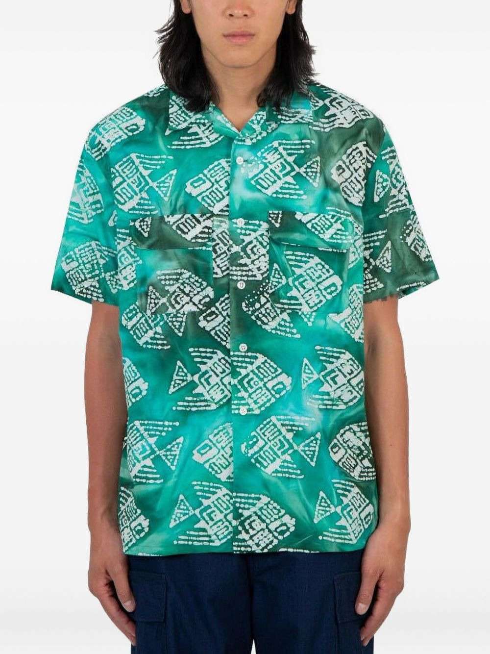 patterned cotton shirt Highlights - Green - Short sleeves - Patterned design - Button fastening - Chest pocket - All-over print Imported Composition Cotton 100% Washing instructions Read Manufacturer Guidelines