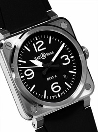 BR 03 41mm Bell & Ross’ ‘BR 03 collection follows the specifications of the Air Forces and its unique square case references cockpit onboard instrumentation.’ This new 41mm timepiece features a smaller stainless-steel case with a reduced lug width and slimmer hands. It’s powered by a BR-CAL.302 calibre automatic movement and boasts a Super-LumiNovadial. Highlights - 41mm - Black - Arabic dial - Sword hands - Super-luminova coated numerals - Super-luminova filled hands - Central hours, minutes and seconds - Date indication - Stainless steel case - Push-down crown - Round face - Sapphire glass - Rubber strap - Pin-buckle fastening - Water resistance up to 100m/10 atm - Automatic movement - 55-hour power reserve Imported Composition stainless steel 100%, Sapphire 100%, Silicone 100% SIZE & FIT Model measurements Height 6 ft 0 in(1.84 m) Bust/Chest 36.22 in(92 cm) Hips 35.43 in(90 cm) Waist 26.77 in(68 cm) Measurement Case size 1.61 in(41 mm) Case thickness 0.43 in(11 mm) Maximum strap length 9.05 in(23 cm) Minimum strap length 7.48 in(19 cm) Strap width 1.25 in(32 mm)