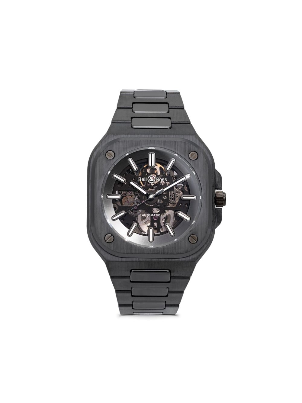 BR 05 41mm Highlights - 41mm - Black - Square face - Skeleton dial - Super-luminova® baton dial - Super-luminova® baton hands - Ceramic case - Screw-down crown - Ceramic link bracelet - Push-button folding clasp - Water resistance up to 100m/10 atm - Automatic self-winding movement - 54-hour power reserve - Sapphire glass - Anti-reflective coating - This item comes with a standard one-year warranty from the brand. Imported Composition Sapphire 100%, Steel 100%, ceramic 100% SIZE & FIT Model measurements Height 6 ft 2 in(1.89 m) Bust/Chest 36.22 in(92 cm) Hips 35.82 in(91 cm) Waist 28.54 in(72.5 cm) Measurement Case size 1.61 in(41 mm) Case thickness 0.39 in(10 mm) Maximum strap length 7.67 in(19.5 cm) Strap width 1.02 in(26 mm)