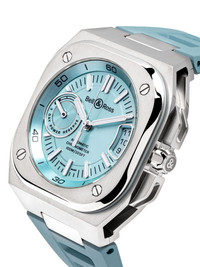 BR-X5 41mm Highlights - 41mm - Ice blue dial - Super-luminova coated numerals and hands - Stainless steel case - Ice blue rubber strap - Push-button folding clasp - Water resistance up to 100m/10 atm - Mechanical movement with automatic winding cosc* certified - 70-hour power reserve - Screw-down crown - Sapphire-crystal case back - Date indication - This item comes with a five-year warranty from the brand. Imported Composition Sapphire Crystal 100%, stainless steel 100%, Rubber 100% SIZE & FIT Model measurements Height 6 ft 2 in(1.87 m) Bust/Chest 38.18 in(97 cm) Hips 36.61 in(93 cm) Waist 29.13 in(74 cm) Measurement Case size 1.61 in(41 mm) Case thickness 0.51 in(13 mm) Maximum strap length 9.44 in(24 cm) Minimum strap length 7.48 in(19 cm) Strap width 1.02 in(26 mm)