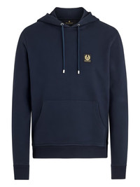 Belstaff logo-patch hoodie Highlights - Dark blue - Drawstring hood - Logo patch - Front pouch pocket - Ribbed hem and cuffs Imported Composition Cotton 100% Washing instructions Read Manufacturer Guidelines