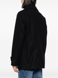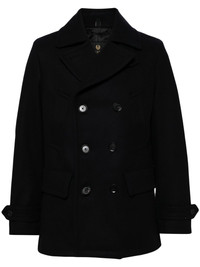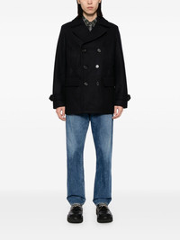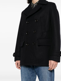 double-breasted coat Highlights - Ink navy - Wool-cashmere blend - Double-breasted button fastening - Notched lapels - Two chest welt pockets - Two front flap pockets - Belted cuffs - Long sleeves - Above-knee length - Central rear vent - Straight hem - Quilted lining - Internal pocket Imported Composition Outer: Wool 75%, Polyamide 20%, Cashmere 5% Lining: Viscose 100% Filling: Polyester 100% SIZE & FIT Model measurements Height 6 ft 2 in(1.87 m) Bust/Chest 33.07 in(84 cm) Hips 35.43 in(90 cm) Waist 26.77 in(68 cm) FittingInformation Designed for a slim fit, offering a comfortable fit that sits just away from the body The internal shoulder pads offer a structured shape Made from a midweight non-stretch fabric