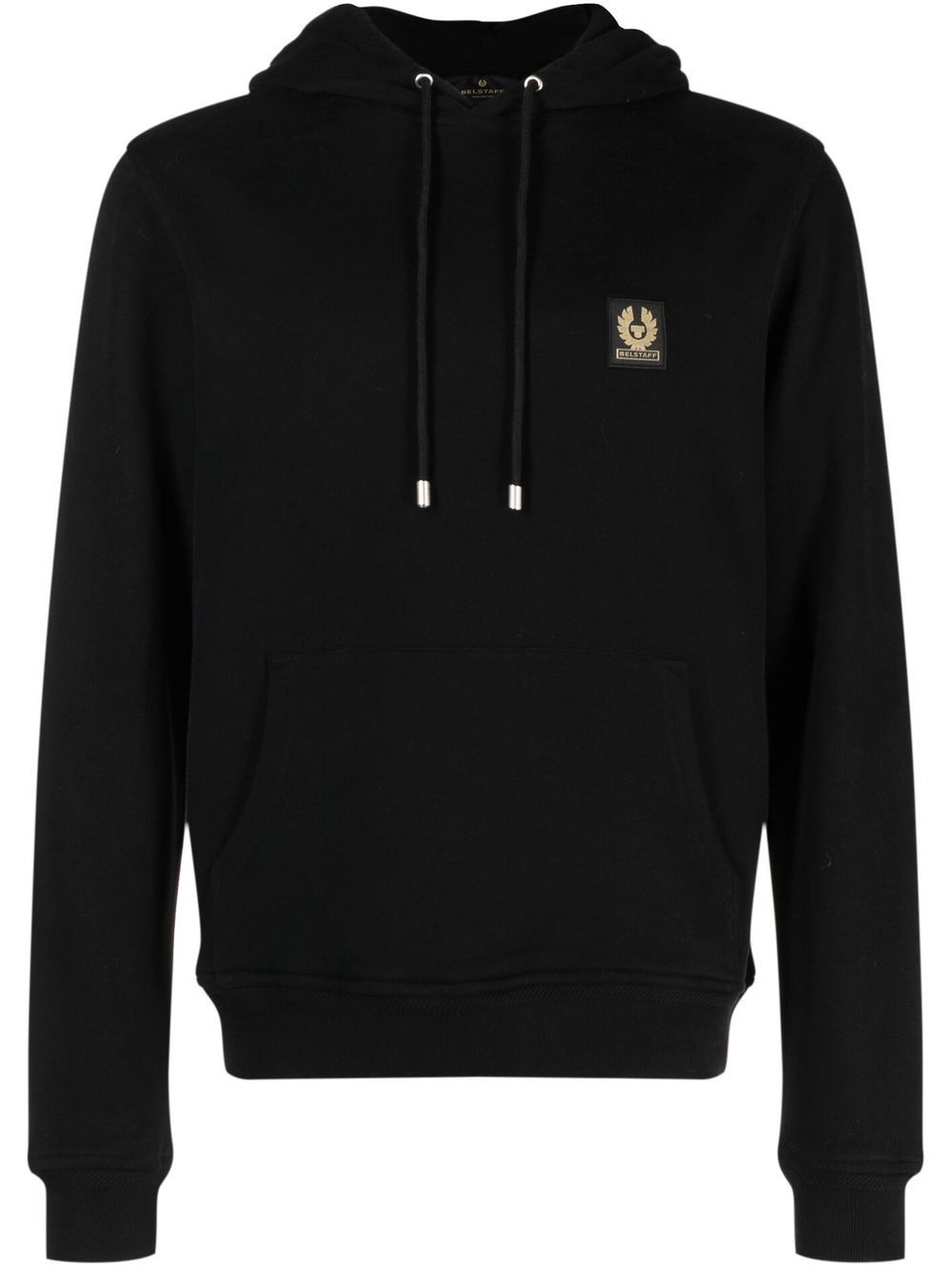 logo-patch drawstring hood Belstaff's hoodie is free from decoration save for the brand's logo patch at the chest. This black iteration is complete with a drawstring hood to help block out the cold. Made in United Kingdom Composition Cotton 100% SIZE & FIT Model measurements Height 6 ft 2 in(1.87 m) Bust/Chest 35.82 in(91 cm) Hips 35.43 in(90 cm) Waist 27.95 in(71 cm) Measurement CHEST 39.37 in(100 cm) SLEEVE LENGTH 34.64 in(88 cm) Shoulder Width 16.53 in(42 cm) Washing instructions Machine Wash
