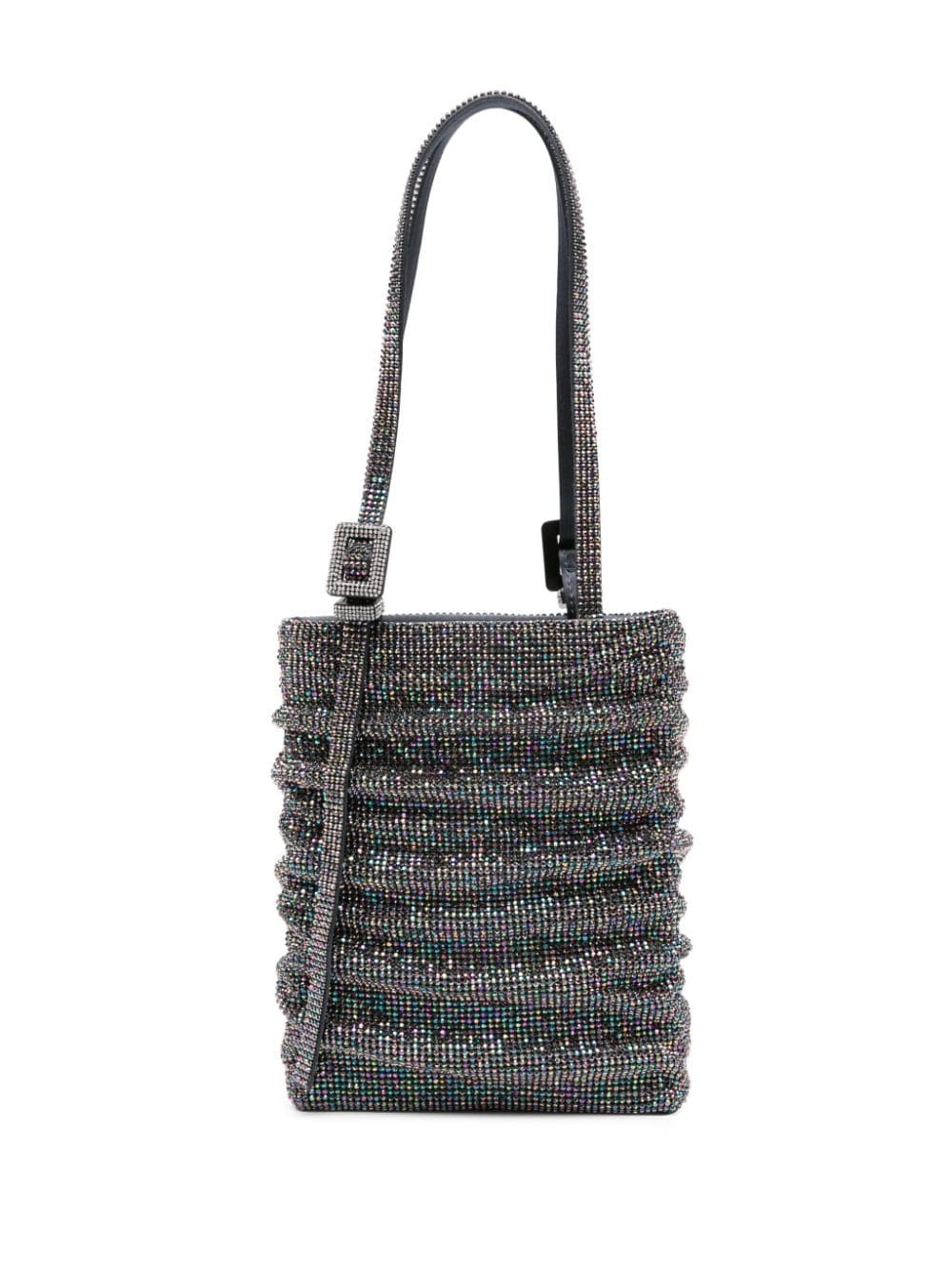 Lollo La Grande shoulder bag Benedetta Bruzziches' Lollo bag collection is named after Luigia Lollobrigida whose career spanned everything from actress and model to artist and politician. This compact tote is made from ruched satin overlayed with crystal mesh from the top handles to the base. Highlights - Steel blue - Silk satin - Crystal embellishment - Crystal buckle detail - Ruched detailing - Logo stamp at the top - Two adjustable shoulder straps - Main compartment - Rectangle body Made in Italy Composition Outer: Silk 100%, Rhinestone 100%, Aluminium 100% SIZE & FIT Model measurements Height 5 ft 10 in(1.77 m) Bust/Chest 33.07 in(84 cm) Hips 37 in(94 cm) Waist 24.8 in(63 cm) Measurement DEPTH 1.57 in(4 cm) HEIGHT 7.87 in(20 cm) WIDTH 6.49 in(16.5 cm) STRAP 9.44 in(24 cm)