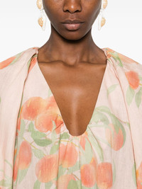 Aline mini dress Highlights - Light orange - U-neck - Long sleeves - Elasticated cuffs - Fruit print Imported Composition Linen/Flax 100% SIZE & FIT Model measurements Height 5 ft 10 in(1.78 m) Bust/Chest 31.49 in(80 cm) Hips 37 in(94 cm) Waist 23.62 in(60 cm) FittingInformation Designed to be unstructured, offering a loose fit throughout Made from a midweight non-stretch fabric