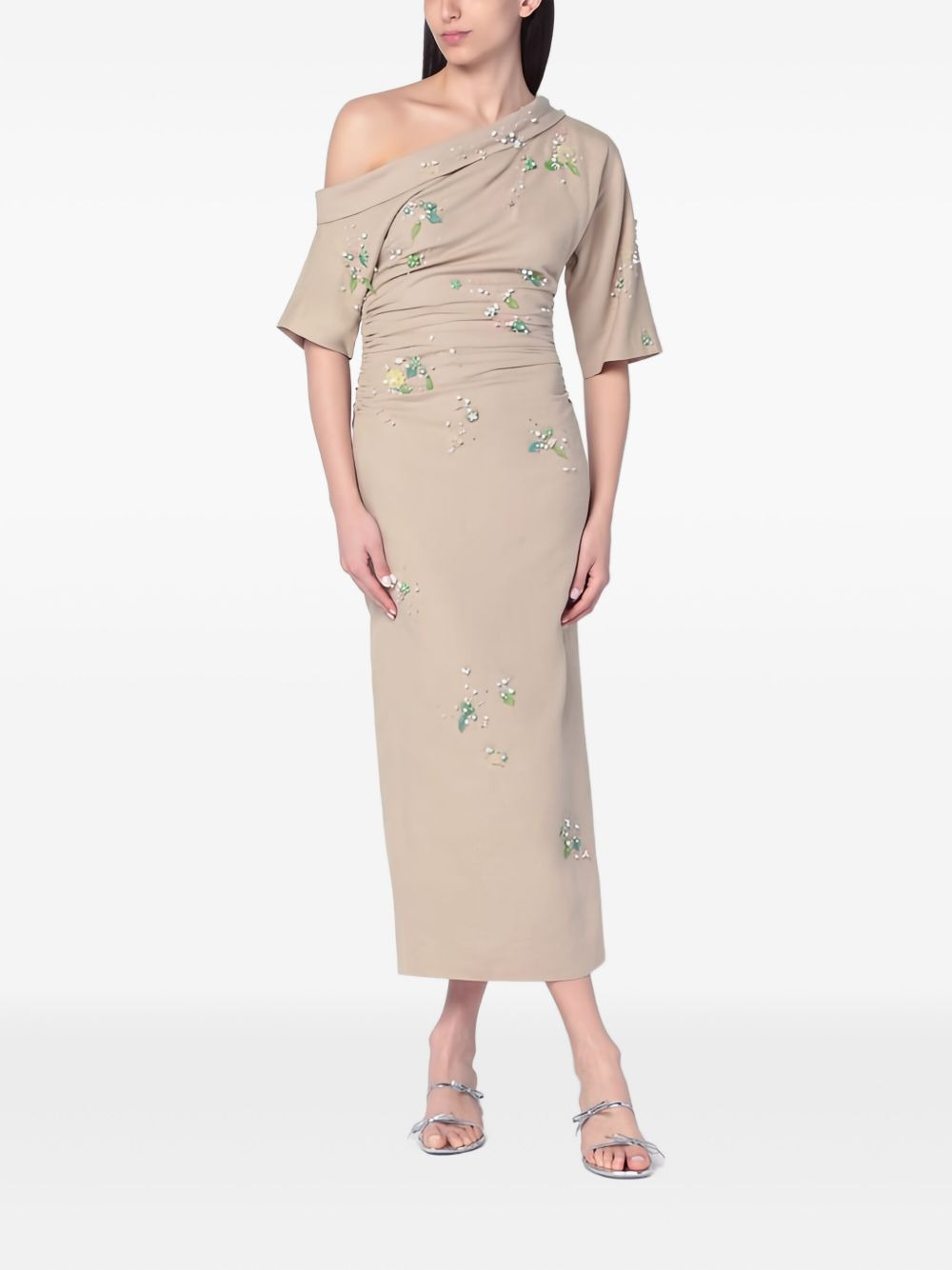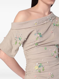 Bowery one-shoulder midi dress Highlights - Beige - One-shoulder neck - Beaded embellishment - Short sleeves - Midi length Imported Composition Lining: Viscose 100% Outer: Cotton 66%, Linen/Flax 34% Washing instructions Read Manufacturer Guidelines