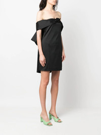 floral-applique off-shoulder dress black floral applique bow detailing off-shoulder thigh-length Imported Composition Polyester 78%, Polyamide 20%, Spandex/Elastane 2% SIZE & FIT Model measurements Height 5 ft 10 in(1.78 m) Bust/Chest 31.49 in(80 cm) Hips 36.22 in(92 cm) Waist 25.59 in(65 cm) FittingInformation This piece fits true to size. We recommend you get your regular size Cut for a loose fit Made with a mid-weight stretch fabric Washing instructions Dry Clean Only
