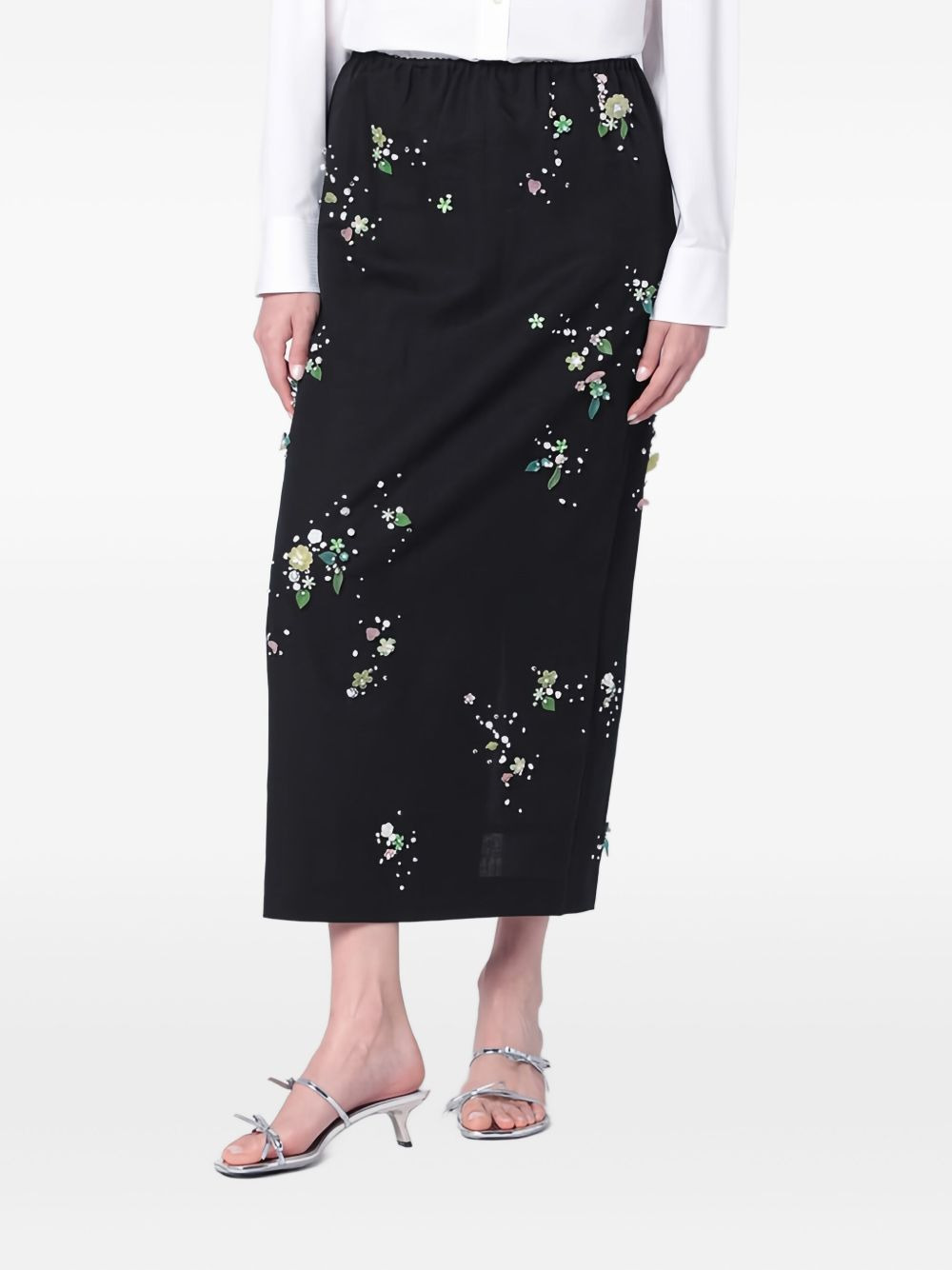 floral-embellished elastic-waist skirt Highlights - Black - Floral embellishments - Pearl embellishments - Elasticated waistband - Midi length Imported Composition Outer: Cotton 66%, Linen/Flax 34% Lining: Viscose 100% Washing instructions Read Manufacturer Guidelines