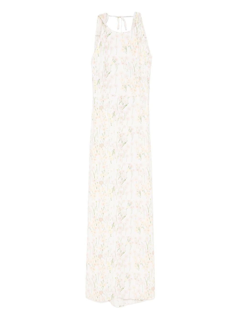Mina gown Highlights - White - Halterneck tie fastening - Rear cape insert - Open back - All-over floral print Imported Composition Outer: Viscose 100% Lining: Viscose Satin 100% SIZE & FIT Model measurements Height 5 ft 10 in(1.79 m) Bust/Chest 33.07 in(84 cm) Hips 35.82 in(91 cm) Waist 24.01 in(61 cm) FittingInformation Designed for a slim fit that sits just away from the body offering a close yet comfortable fit Made from a midweight non-stretch fabric