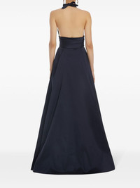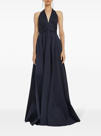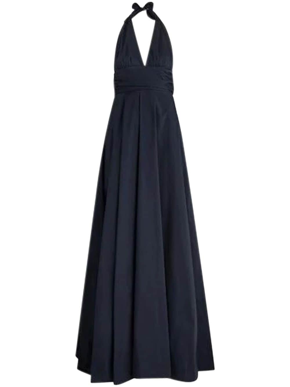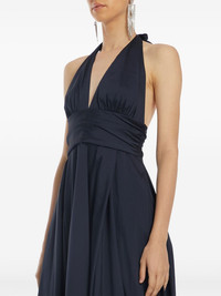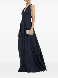 Monroe dress Highlights - Midnight blue - Stretch-design - Gathered detailing - V-neck - Halterneck tie fastening - Concealed side zip fastening - Open back - Fitted waistline - Full skirt - Straight hem - Floor-length Imported Composition Polyester 78%, Polyamide 20%, Elastane 2%