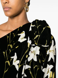 Nel floral-print one-shoulder dress Bold and whimsical designs take centre stage at Bernadette for SS24, and the Nel dress is proof. It's cut from velvet to a draped, floor-grazing silhouette accentuated by an asymmetric neckline and all-over floral print. A voluminous bow at the shoulder adds romantic flair. Highlights - Black/multicolour - Velvet - Silk blend - All-over floral print - Oversize bow detail on the left shoulder - One-shoulder - Single long sleeve - Floor-length - No lining Imported Composition Viscose 82%, Silk 18% SIZE & FIT Model measurements Height 5 ft 10 in(1.77 m) Bust/Chest 33.07 in(84 cm) Hips 37 in(94 cm) Waist 24.8 in(63 cm) Measurement SLEEVE LENGTH 23.22 in(59 cm) LENGTH 59.84 in(152 cm) WAIST 39.37 in(100 cm) BUST 36.22 in(92 cm) FittingInformation Designed to be unstructured, offering a loose fit throughout Made from a midweight non-stretch fabric This piece fits true to size – take your usual size