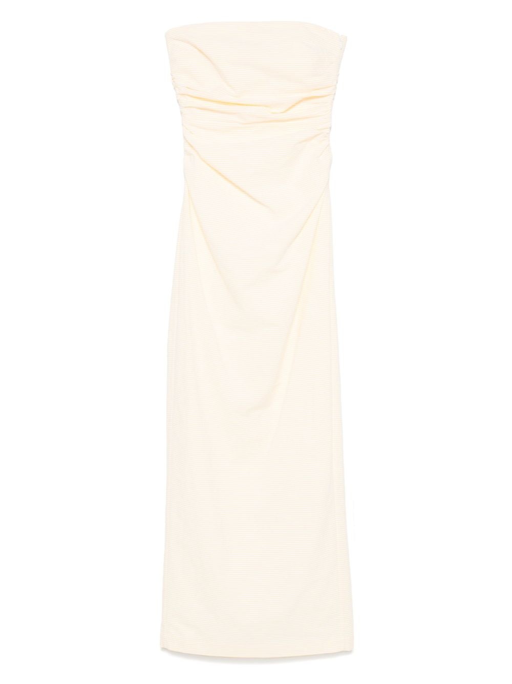 Vera maxi dress Highlights - Light beige - Concealed side zip fastening - Strapless - Gathered detailing - Rear slit Imported Composition Outer: Cotton 100% Lining: Cotton 100% SIZE & FIT Model measurements Height 5 ft 10 in(1.79 m) Bust/Chest 33.07 in(84 cm) Hips 35.82 in(91 cm) Waist 24.01 in(61 cm) FittingInformation Designed for a slim fit that sits just away from the body offering a close yet comfortable fit The vented hem offers movement at the rear Made from a midweight non-stretch fabric