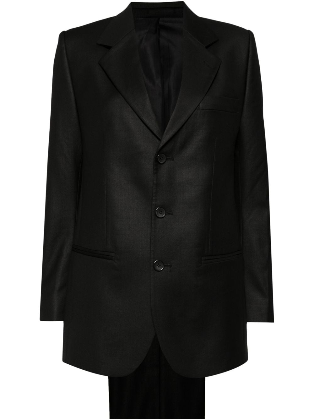 single-breasted straight suit Highlights - Black - Wool blend Imported Composition Outer: Wool 94%, Lycra 4%, Elastane 2% Lining: Viscose 80%, Polyester 20% SIZE & FIT Model measurements Height 5 ft 10 in(1.77 m) Bust/Chest 31.49 in(80 cm) Hips 35.43 in(90 cm) Waist 25.19 in(64 cm) FittingInformation Designed for a slim fit that sits just away from the body offering a close yet comfortable fit The internal shoulder pads offer a structured shape Made from a midweight stretch fabric, this piece offers elasticity and flexibility when worn This piece fits true to size – take your usual size