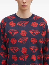 diamond dollar-intarsia sweater Highlights - Navy blue - Diamond pattern - Dollar-sign motif - Crew neck - Long sleeves Imported Composition Cotton 80%, Wool 20% Washing instructions Read Manufacturer Guidelines