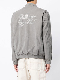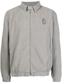 logo-print zip-up shirt jacket light grey logo print to the rear logo patch to the front classic collar front zip fastening long sleeves Made in United Kingdom Composition Polyester 100% SIZE & FIT Model measurements Height 6 ft 2 in(1.87 m) Bust/Chest 34.25 in(87 cm) Hips 36.22 in(92 cm) Waist 29.52 in(75 cm)