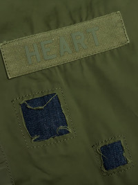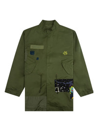 patchwork jacket Highlights - Army green - Patchwork design - Denim panels - Embroidered detail Imported Composition Nylon 100% Washing instructions Read Manufacturer Guidelines