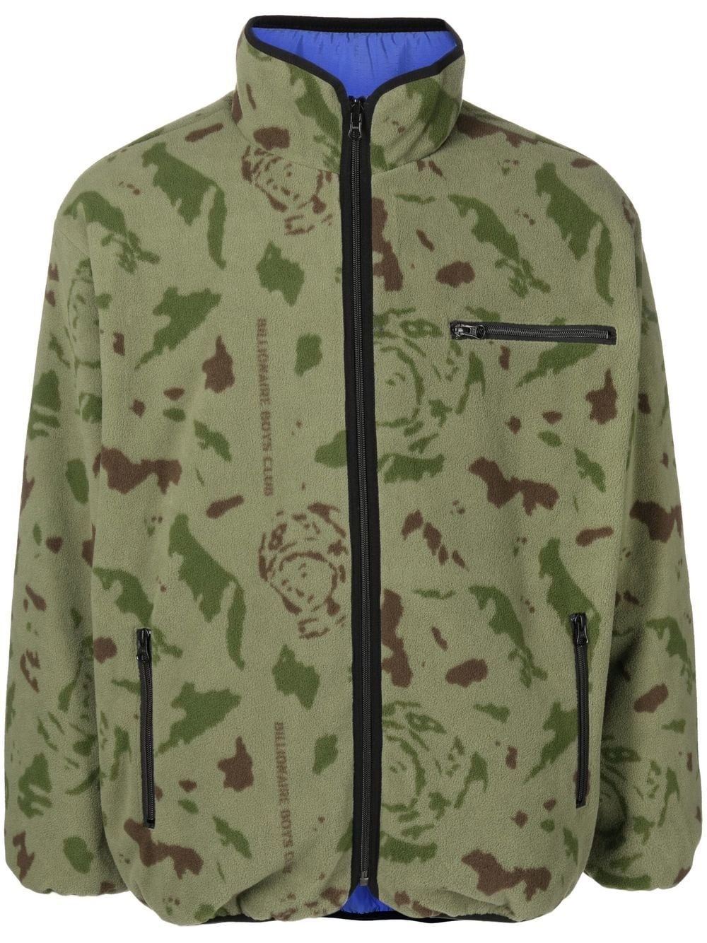 reversible fleece jacket multicolour camouflage pattern reversible high neck front zip fastening long sleeves zip-fastening chest pocket side zip-fastening pocket Imported Composition Outer: Polyester 100% SIZE & FIT Model measurements Height 6 ft 2 in(1.87 m) Bust/Chest 36.22 in(92 cm) Hips 37.79 in(96 cm) Waist 28.34 in(72 cm) FittingInformation This piece fits true to size. We recommend you get your regular size Cut for a loose fit Made with a mid-weight fabric Washing instructions Machine Wash