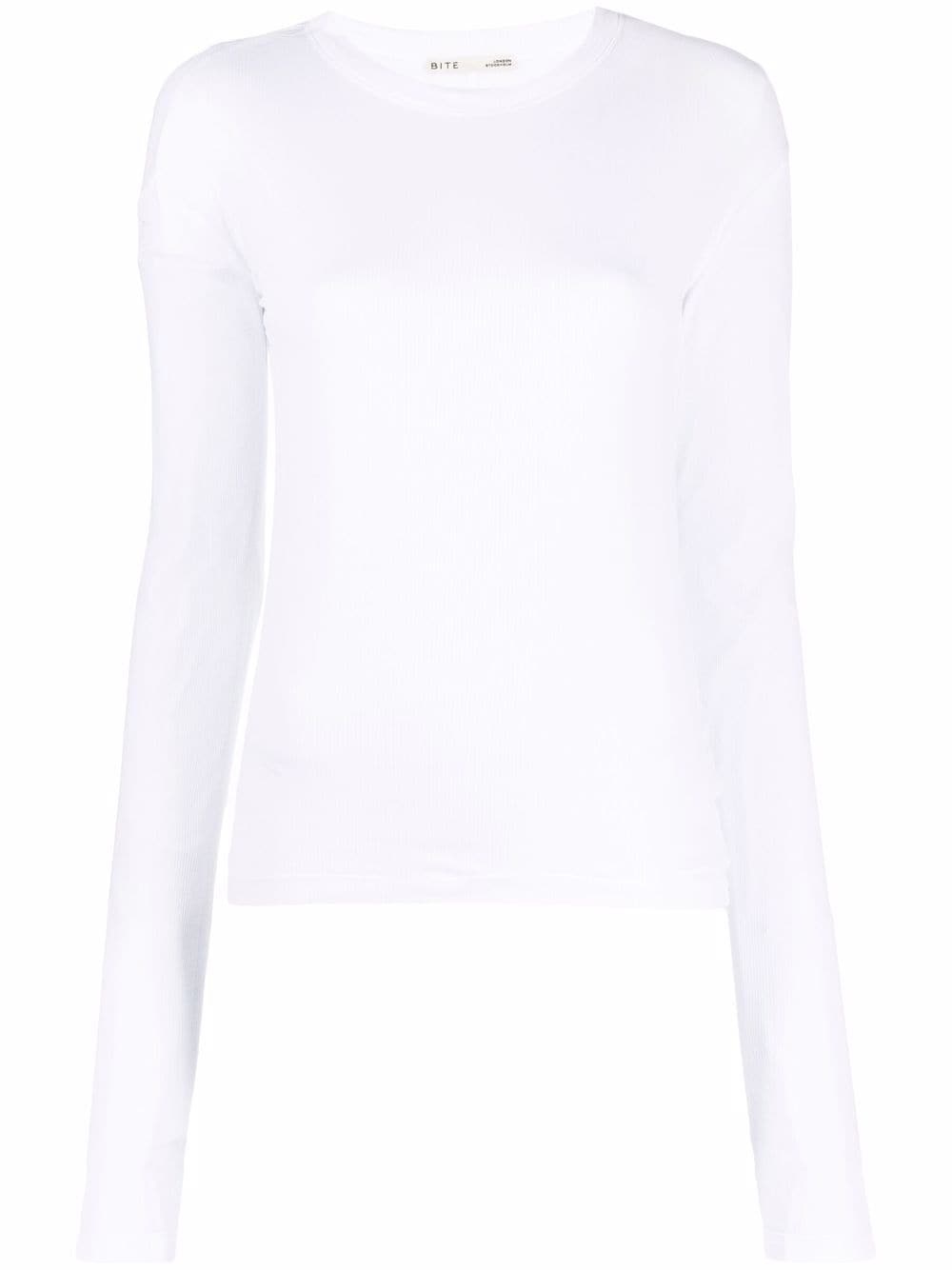 semi-sheer cotton T-shirt Highlights - White - Cotton - Semi-sheer construction - Fine knit - Long sleeves - Round neck Imported Composition Cotton 100% SIZE & FIT Model measurements Height 5 ft 10 in(1.79 m) Bust/Chest 33.07 in(84 cm) Hips 35.82 in(91 cm) Waist 24.01 in(61 cm) Washing instructions Machine Wash