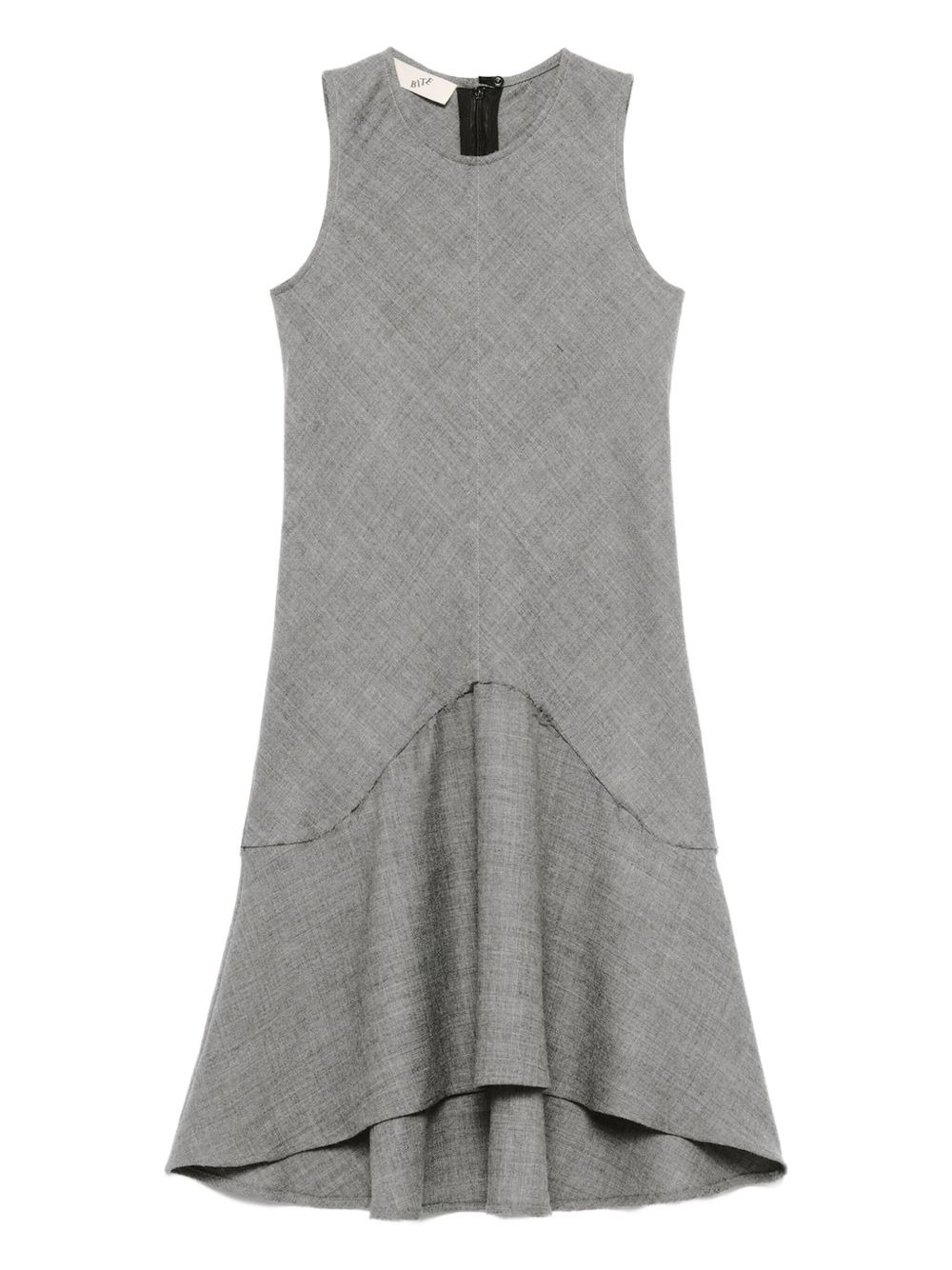 sleeveless asymmetrical mini dress Highlights - Grey - Sleeveless - Round neck - Rear zip fastening - Asymmetrical hemline Imported Composition Body: Wool 100% Washing instructions Dry Clean Only
