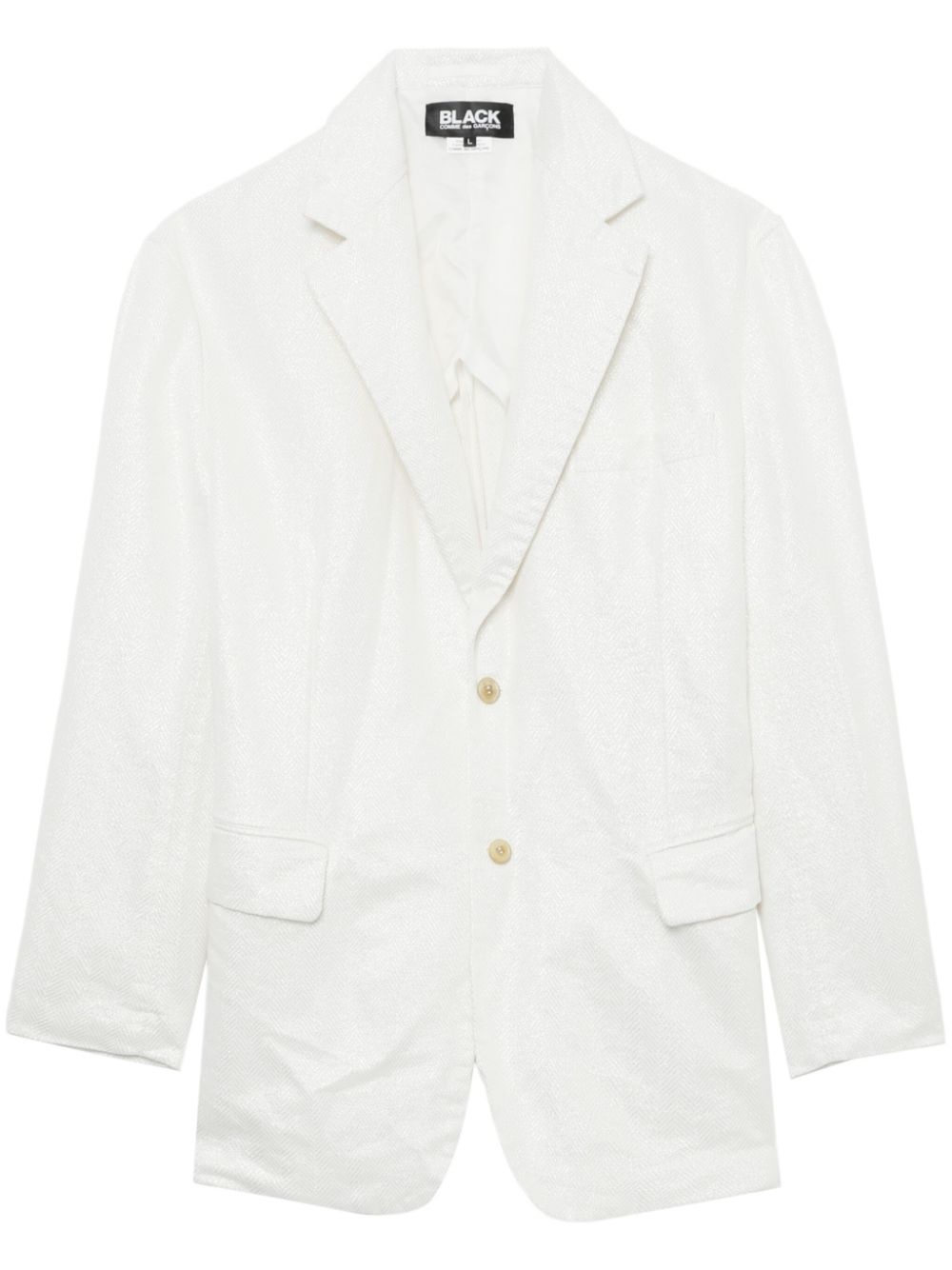 asymmetric single-breasted blazer white notched lapels long sleeves front button fastening two side flap pockets asymmetric hem When buying this unisex item, keep in mind that it is graded in standard men's sizing. Imported Composition Polyester 100%