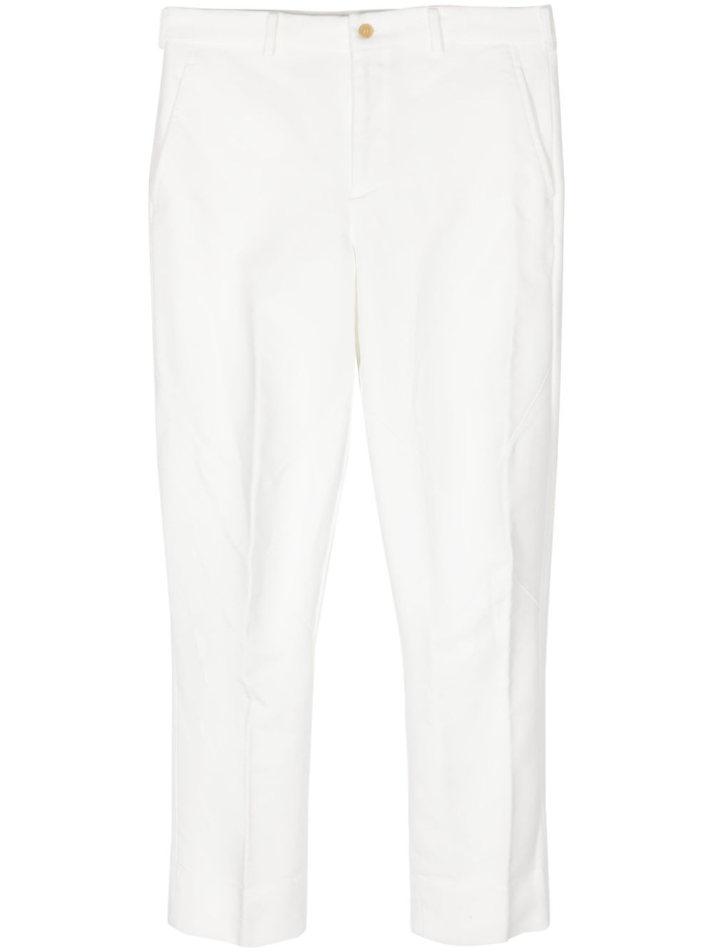cropped slim-cut trousers Highlights - White - Belt loops - Two diagonal pockets to the sides - Rear button-fastening pocket - Rear welt pocket - Pressed crease - Cropped leg - Slim cut - Concealed fly and button fastening - When buying this unisex item, keep in mind that it is graded in standard men's sizing. Imported Composition Polyester 100%