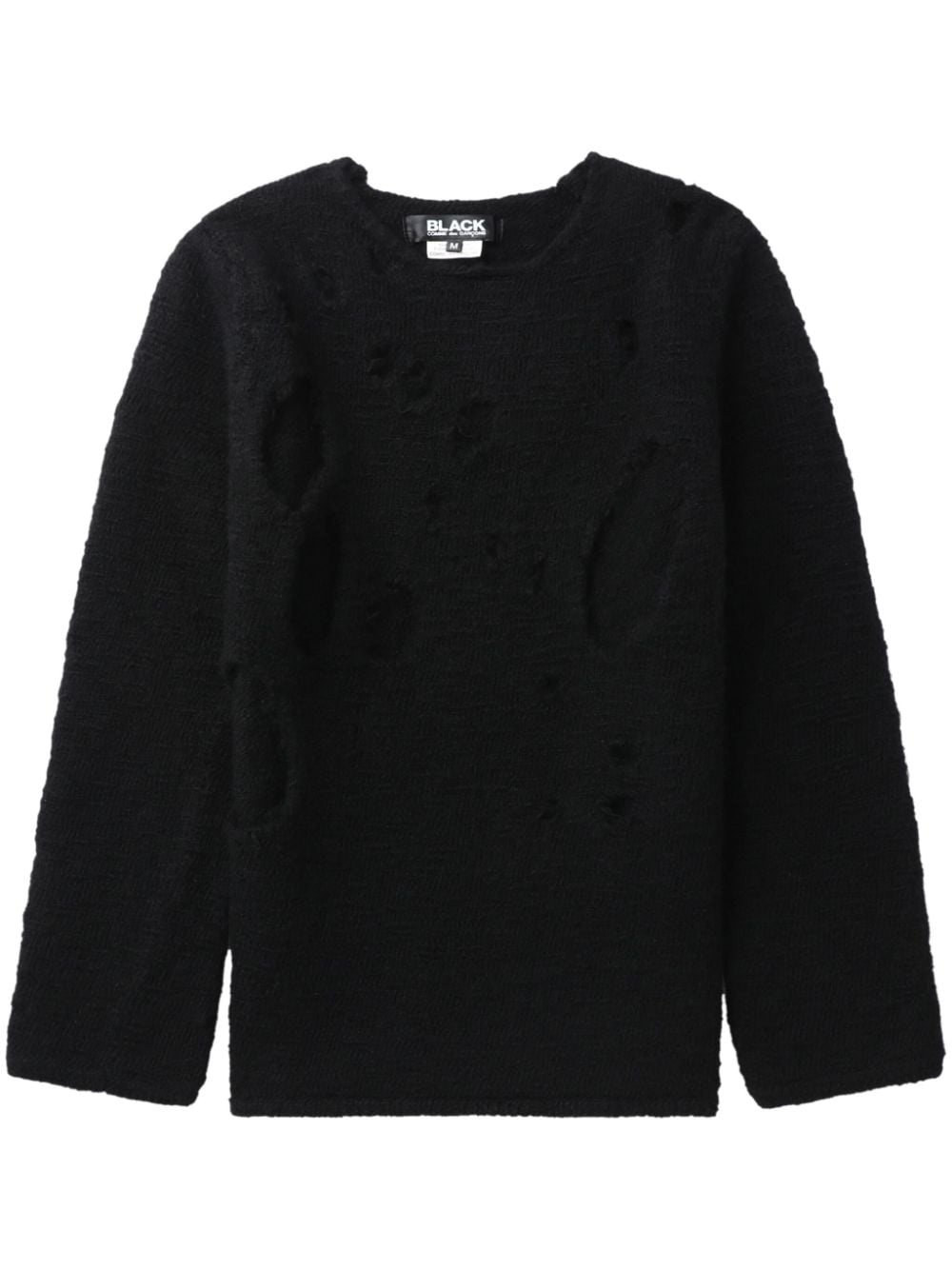 distressed-effect wool jumper Highlights - Black - Wool - Distressed effect - Ribbed trim - Crew neck - Long sleeves - Straight hem - When buying this unisex item, keep in mind that it is graded in standard men's sizing. Imported Composition Wool 100%