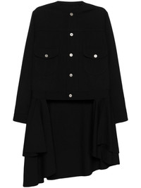 distressed panelling jacket Highlights - Black - Wool - Distressed effect - Layered design - Front button fastening - Round neck - Two front flap pockets - Long sleeves - Buttoned-cuff sleeves - When buying this unisex item, keep in mind that it is graded in standard men's sizing. Imported Composition Wool 100% SIZE & FIT Model measurements Height 6 ft 3 in(1.9 m) Bust/Chest 35.03 in(89 cm) Hips 36.61 in(93 cm) Waist 29.13 in(74 cm) FittingInformation This piece is unisex – expect a slim fit if you usually select men's sizing; expect a looser fit if you usually select women's sizes Made from a midweight non-stretch fabric