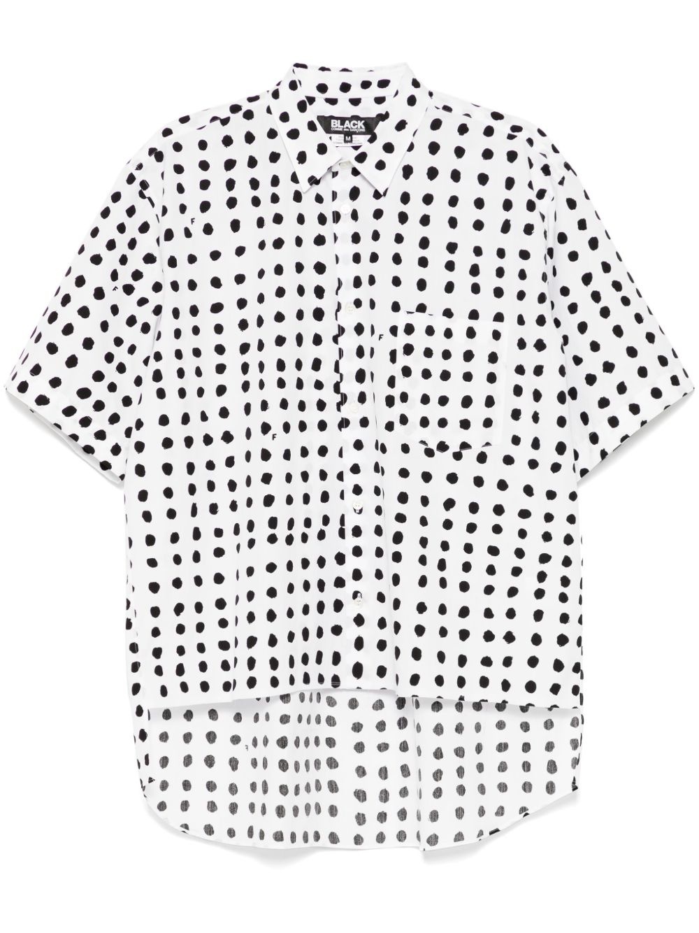 Filip Pagowski polka-dot shirt Highlights - White/black - Front button fastening - Chest patch pocket - High-low hem - When buying this unisex item, keep in mind that it is graded in standard men's sizing. Imported Composition Cotton 100% SIZE & FIT Model measurements Height 6 ft 2 in(1.88 m) Bust/Chest 34.25 in(87 cm) Hips 34.64 in(88 cm) Waist 26.77 in(68 cm) FittingInformation This piece is unisex – if you usually select men's sizing expect a loose fit throughout; if you usually select women's sizes, expect an oversized fit Made from a midweight non-stretch fabric Washing instructions Dry Clean Only