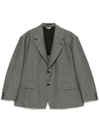 herringbone blazer Highlights - Medium grey - Front button fastening - Chest welt pocket - Two side flap pockets - Asymmetric hem Imported Composition Outer: Wool 100% Lining: Cupro 100% SIZE & FIT Model measurements Height 6 ft 1 in(1.85 m) Bust/Chest 35.82 in(91 cm) Hips 37.79 in(96 cm) Waist 29.13 in(74 cm) FittingInformation Designed for an oversized fit, offering additional room throughout Made from a midweight non-stretch fabric
