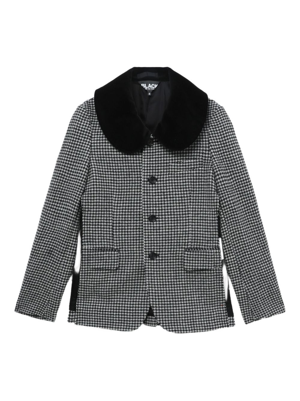 houndstooth collar blazer Highlights - Black and white - Houndstooth pattern - Peter pan collar - Button fastening - Front pockets - Buttoned cuffs Imported Composition Outer: Wool 100% Lining: Cotton 100% Washing instructions Read Manufacturer Guidelines