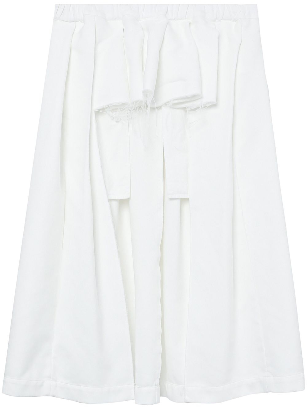 ruffle-detail pleated midi skirt Highlights - Optical white - Ruffled detailing - Fully pleated - Raw-cut finish - Elasticated waistband - High-waisted - Straight hem - Mid-length - When buying this unisex item, keep in mind that it is graded in standard men's sizing. Imported Composition Polyester 100%