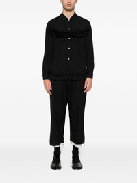 ruffled buttoned shirt Highlights - Black - Ruffled detailing - Peter pan collar - Button fastening - Long sleeves Imported Composition Polyester 100% SIZE & FIT Model measurements Height 5 ft 10 in(1.78 m) Bust/Chest 31.49 in(80 cm) Hips 37 in(94 cm) Waist 23.62 in(60 cm) Washing instructions Hand Wash