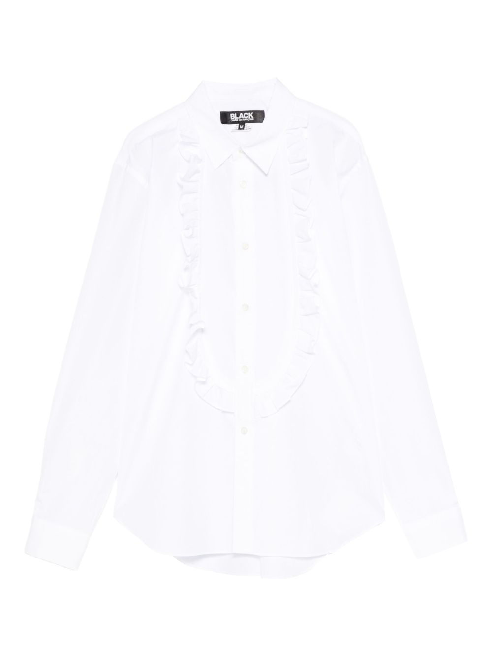 ruffled-detail shirt Highlights - White - Ruffled placket - Front button fastening - Long sleeves - Buttoned cuffs - Curved hem Imported Composition Fabric 100% SIZE & FIT Model measurements Height 5 ft 10 in(1.77 m) Bust/Chest 32.28 in(82 cm) Hips 35.03 in(89 cm) Waist 25.19 in(64 cm) Washing instructions Read Manufacturer Guidelines