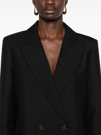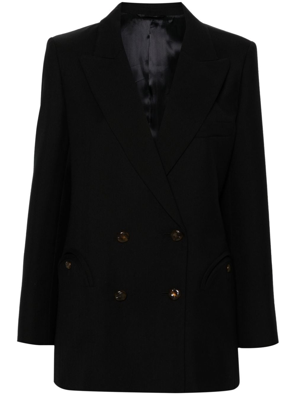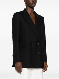 Alcanara blazer Highlights - Black - Virgin wool - Double-breasted button fastening - Peak lapels - Shoulder pads - Long sleeves - Buttoned cuffs - Chest welt pocket - Two front button-fastening jetted pockets - Straight hem - English rear vents - Internal patch pockets Made in Italy Composition Outer: Virgin Wool 100% Lining: Acetate 60%, Viscose 40% SIZE & FIT Model measurements Height 5 ft 10 in(1.77 m) Bust/Chest 32.28 in(82 cm) Hips 35.03 in(89 cm) Waist 25.19 in(64 cm) FittingInformation Designed for a relaxed fit, this piece allows for comfort and movement when worn The internal shoulder pads offer a structured shape Made from a midweight non-stretch fabric This piece fits true to size – take your usual size