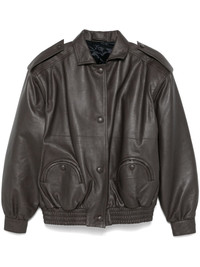 Ares Charlie jacket Highlights - Cedar brown - Calf leather - Smooth grain - Front button fastening - Classic collar - Epaulettes - Long sleeves - Buttoned cuffs - Two front button-fastening jetted pockets - Internal jetted pocket - Diamond-quilted lining - Elasticated hem Made in Italy Composition Outer: Calf Leather 100% Lining: Viscose 100%, Polyester 100% SIZE & FIT Model measurements Height 5 ft 9 in(1.75 m) Bust/Chest 31.88 in(81 cm) Hips 34.64 in(88 cm) Waist 24.01 in(61 cm) FittingInformation Designed to be unstructured, offering a loose fit throughout The elasticated hem allows for movement and a comfortable fit Soft leather has a supple and smooth construction offering some flexibility