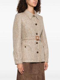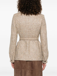 belted speckled wool jacket Highlights - Beige - Speckled effect - Button fastening - Belted waist - Side pockets Made in Italy Composition Outer: Alpaca 66%, Virgin Wool 34% Lining: Viscose 100% SIZE & FIT Model measurements Height 5 ft 10 in(1.79 m) Bust/Chest 31.88 in(81 cm) Hips 35.43 in(90 cm) Waist 23.62 in(60 cm) Washing instructions Dry Clean Only