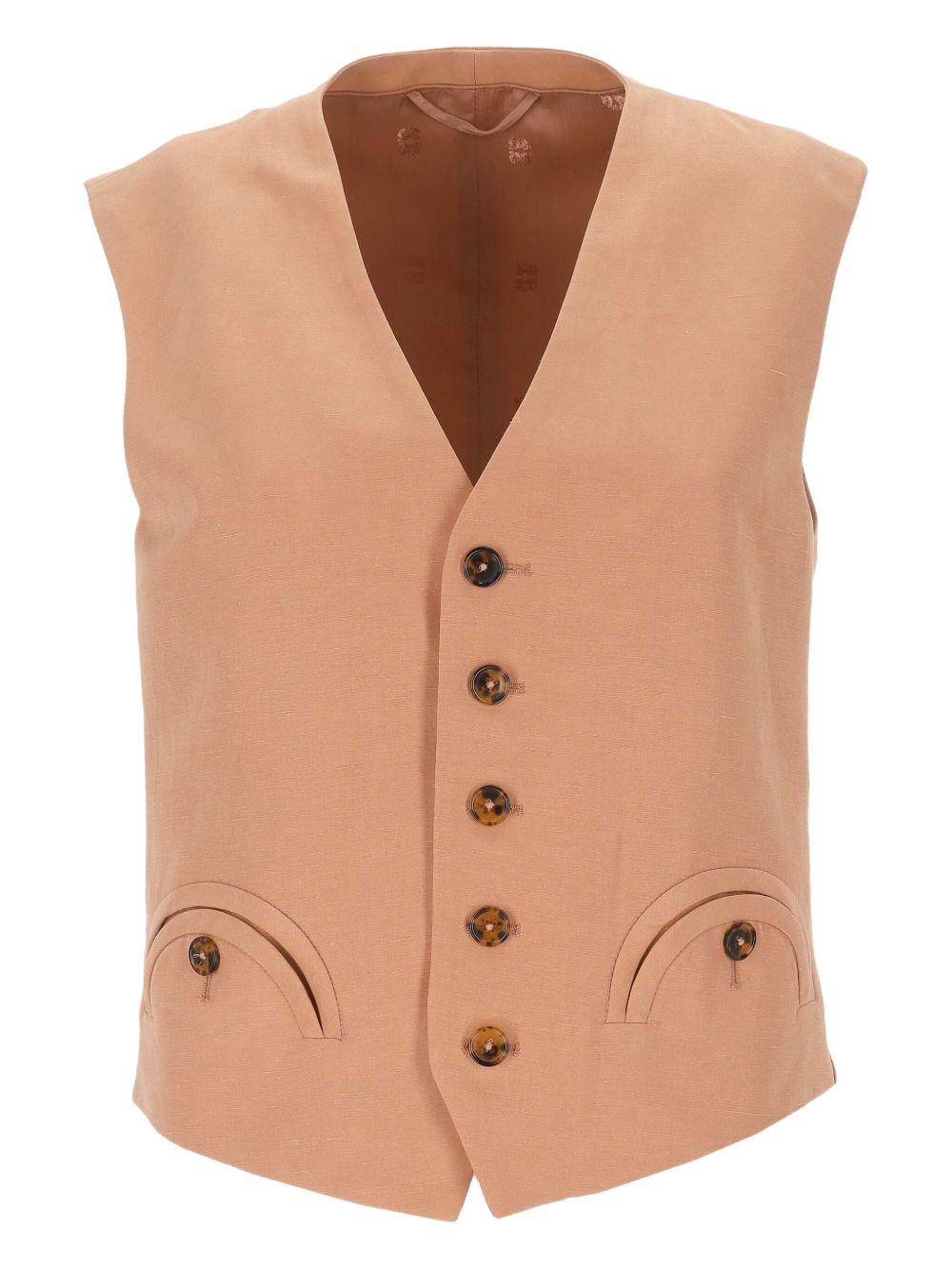 button-down waistcoat Highlights - Peach pink - Front button fastening - Two front patch pockets - V-neck - Sleeveless Made in Italy Composition Outer: Silk 62%, Linen/Flax 38% Lining: Viscose 100%