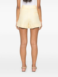 Clarity Selle shorts Highlights - Butter yellow - Concealed front button, hook and zip fastening - Two side inset pockets - Rear welt pocket - Pleat detailing Made in Italy Composition Outer: Linen/Flax 100% Lining: Viscose 100% SIZE & FIT Model measurements Height 5 ft 9 in(1.76 m) Bust/Chest 31.1 in(79 cm) Hips 36.61 in(93 cm) Waist 24.8 in(63 cm) FittingInformation Designed for a loose fit, offering comfort and movement when worn Made from a midweight non-stretch fabric